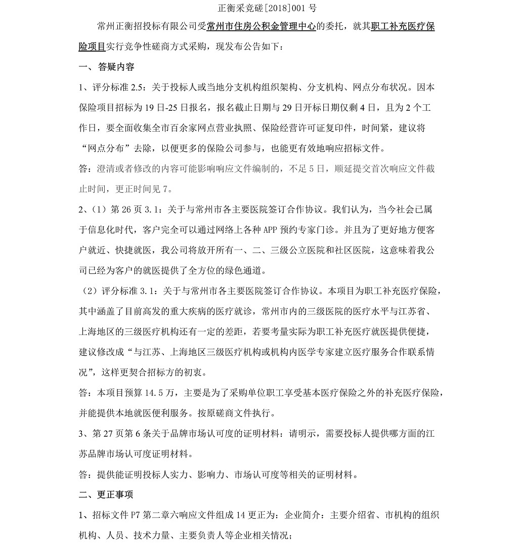常州市住房公積金管理中心職工補(bǔ)充醫(yī)療保險(xiǎn)項(xiàng)目 答疑、更正公告